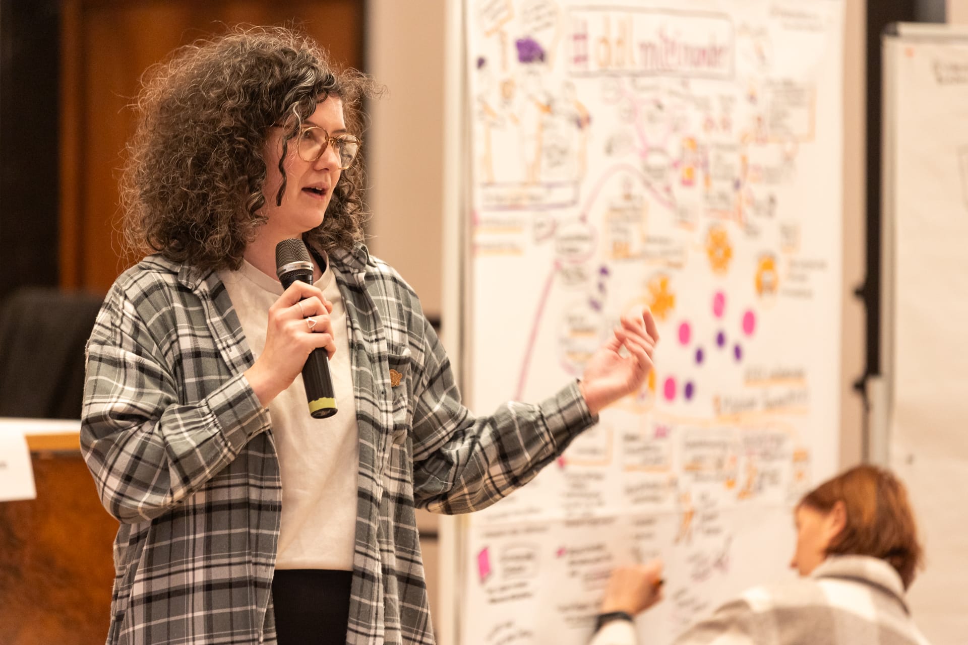 Schriftführerin Claudia Kociucki eröffnete die Mitglieder-Tagung mit ihrem Impuls „Gemeinsam geht was!“ und stellte den Ablauf und die Workshop-Themen vor.