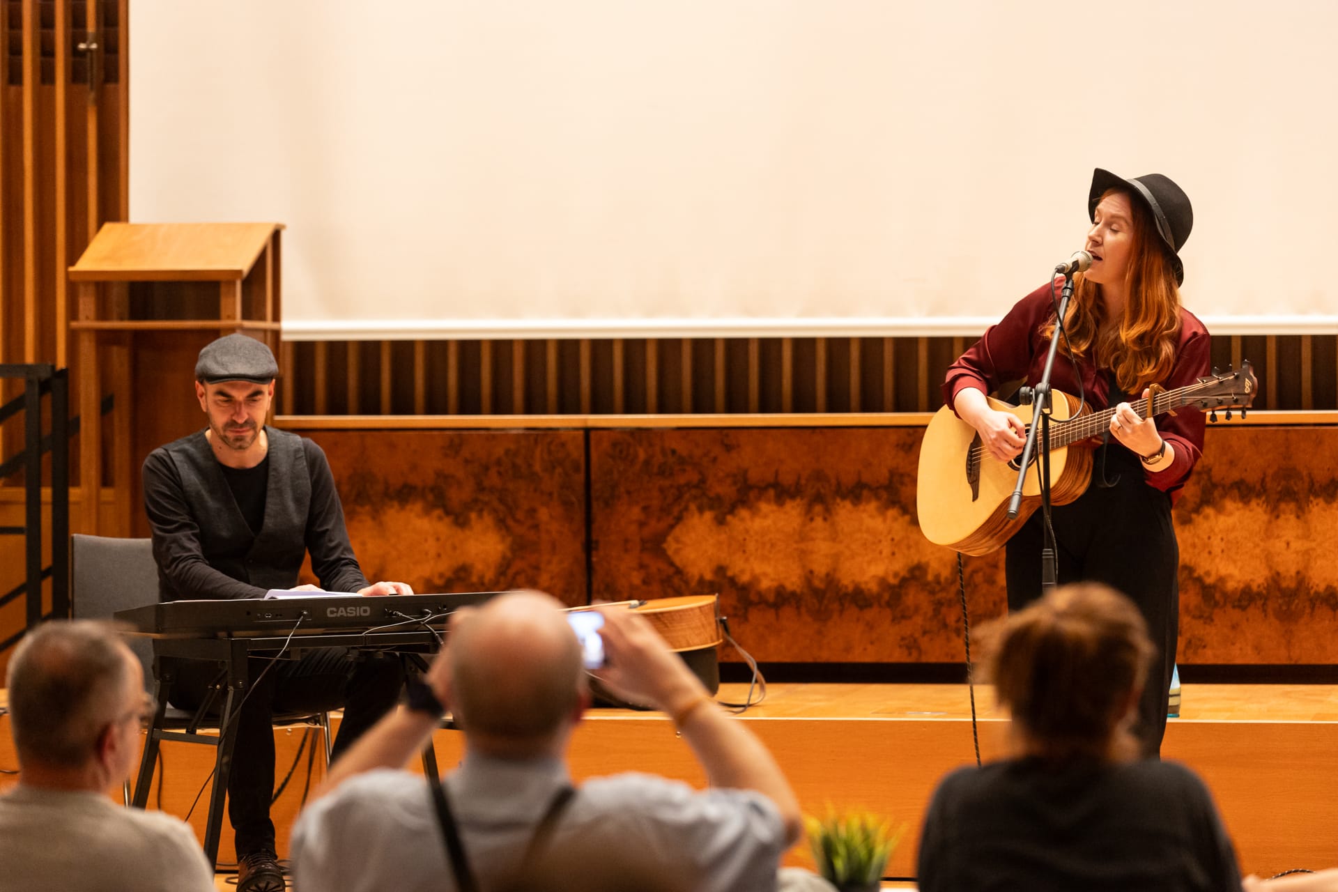 Die Mitglieder-Tagung endete mit dem Programmpunkt „Depression und künstlerischer Ausdruck“, bei dem DDL-Botschafterin Marie-Luise Gunst mit einem Kurzkonzert be- und verzauberte – ebenso wie Claudia Kociucki mit selbstgeschriebenen und vorgetragenen Gedichten und Texten zum Nachdenken und Schmunzeln.